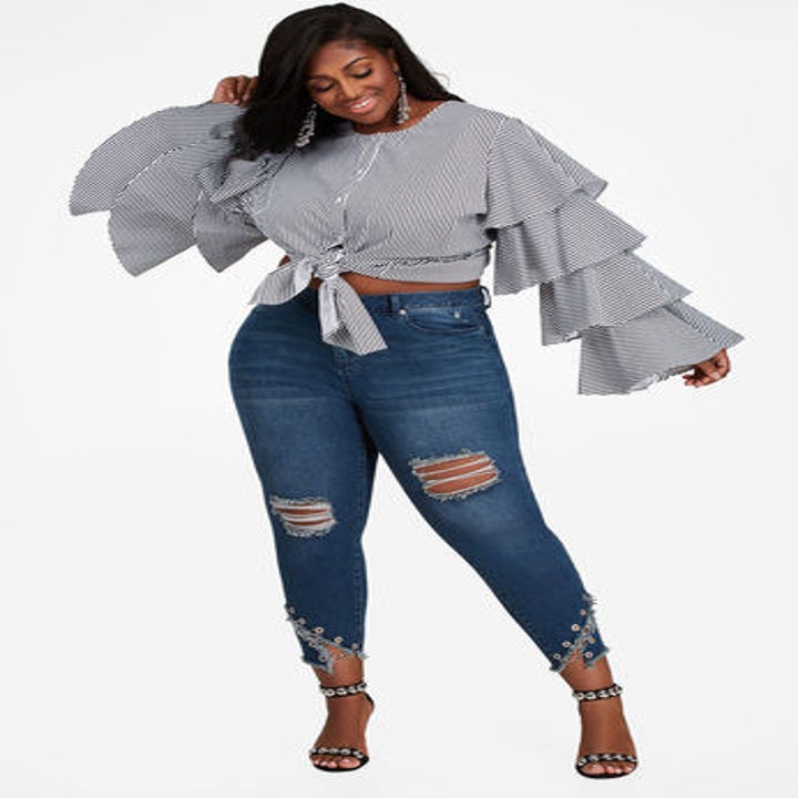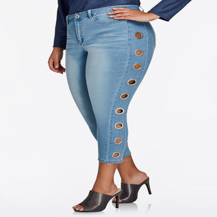 Ashley Stewart's denim skews toward the embellished, so if you're looking for jeans that are a little flashy — think grommets, laces, and sequins aplenty, this is your spot. If trendy isn't your bag, they also have simpler options, and a wide range of sizes — including four different lengths.