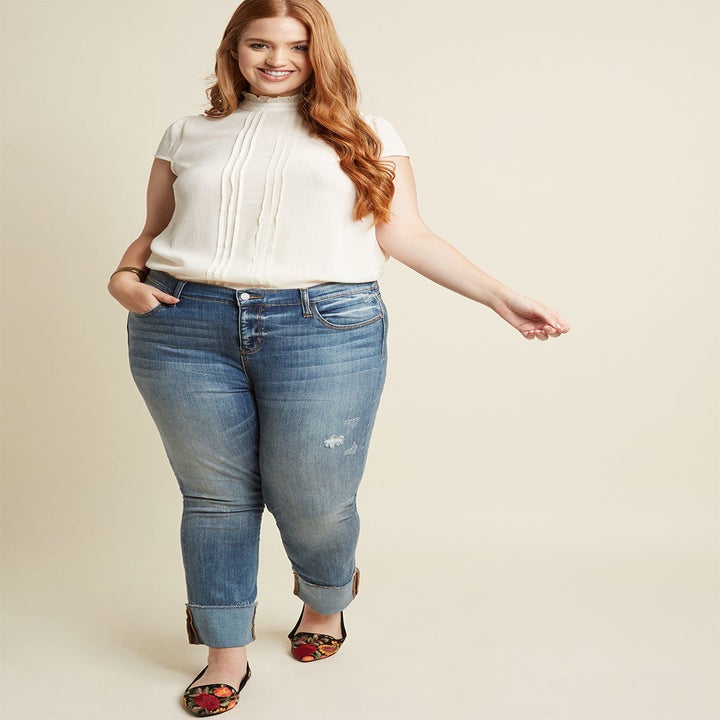 ModCloth is one of the few stores on this list that offers most of its jeans in both straight and plus sizes. They don't have a ton of options, but they do have the vintage-inspired wide-leg market cornered 😍.