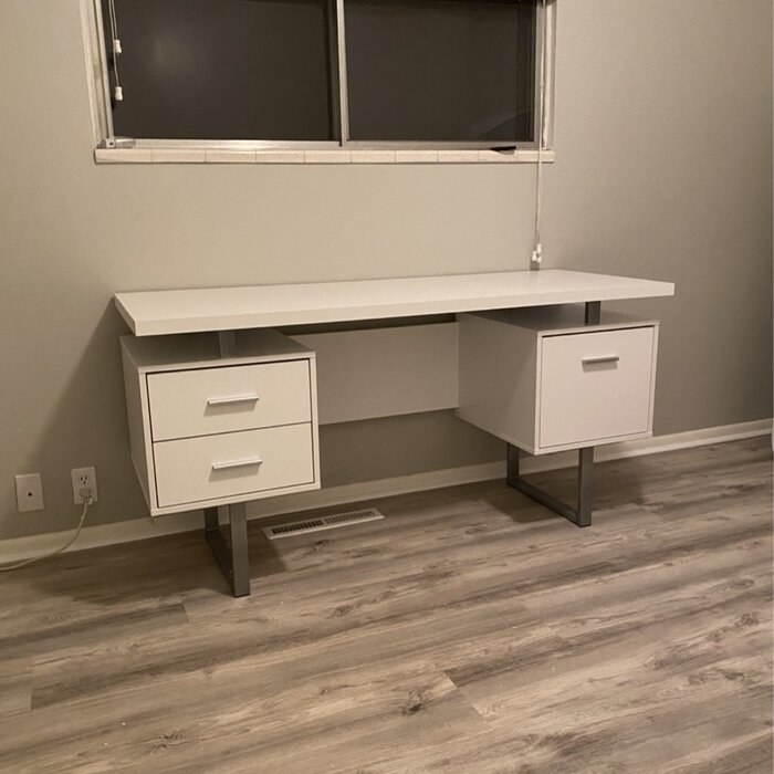 10. A double pedestal-sided computer desk with four wide-open cubbies to store all of your home-office necessities below and your laptop/desktop up above.