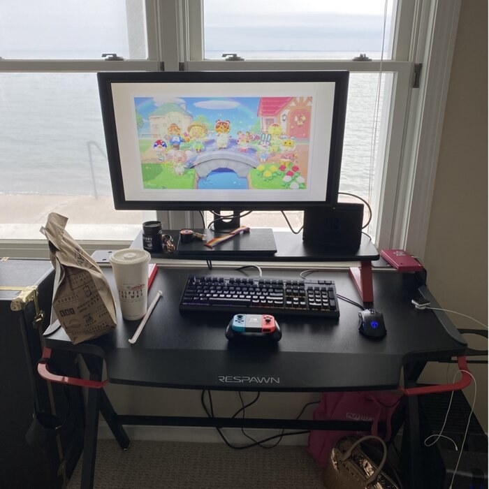 Promising review: "Really convenient desk, great price, looks absolutely fantastic. One thing I would change; cup holder isn’t really meant for cans/water bottles and such, mostly only for cups. But that’s a very easily avoided problem! Definitely recommend if you’re looking for a desk for gaming without blowing your whole budget." —Cody from Goodyear, AZ