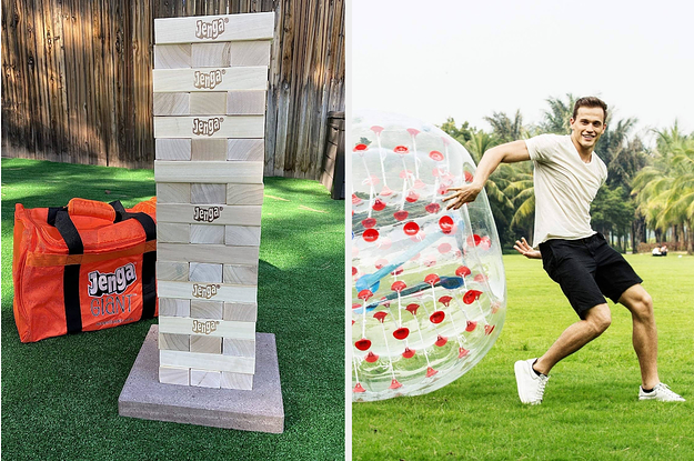 9. A giant Jenga game that starts at 26 inches high and can stack to over 5 feet until someone invariably knocks it over. These hardwood blocks are 15 times the size of classic Jenga pieces and can be transported via a heavy-duty carrying bag.