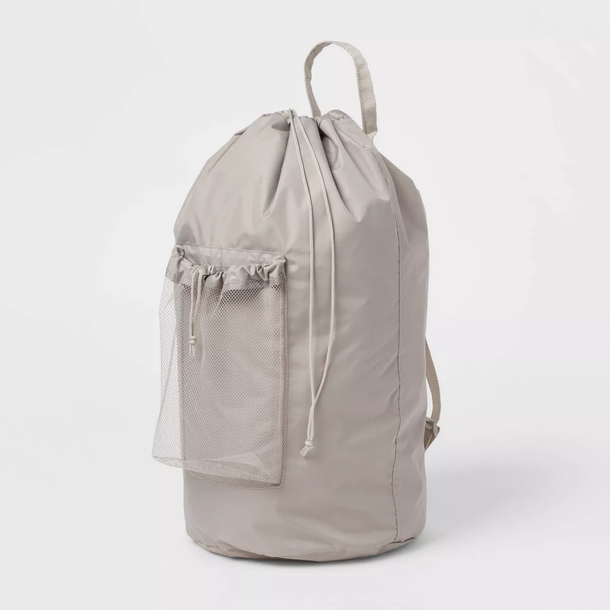 Promising review: "I had been lugging my plastic hamper back and forth to do laundry until I saw this on Target's website. Placed an order for pickup immediately. This thing is MASSIVE which is great because I only do laundry like, two times a month. I don't personally lug laundry detergent around but detergent, softener, and dryer sheets could ABSOLUTELY fit in the front pocket (the smaller jugs). I love wearing this as a backpack, way more useful than expected. I also have thrown this into the laundry once and it came out great." —kaitq
