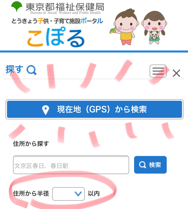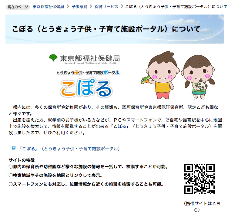 サイトはこちら。こぽる(とうきょう子供・子育て施設ポータル)です。