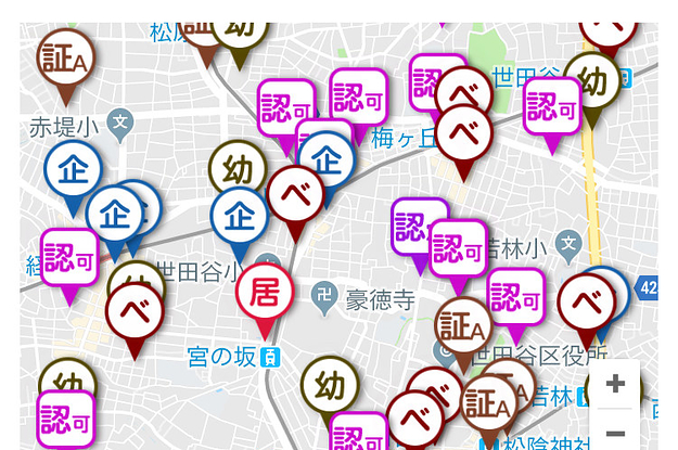 子どもを預けることができる施設がブワワッと出てきます。