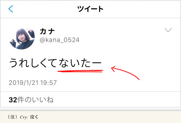 渋谷系JK100人中78人が「本当は泣いていないけど、嬉しさを強調するために『ないたー』をつけている」と答えました。「テスト全然できなくてないたー」「良い点とれてないたー」など、「ないたー」には感情を強調する働きがあります。