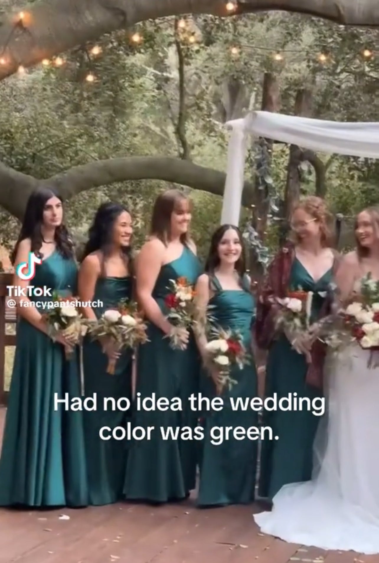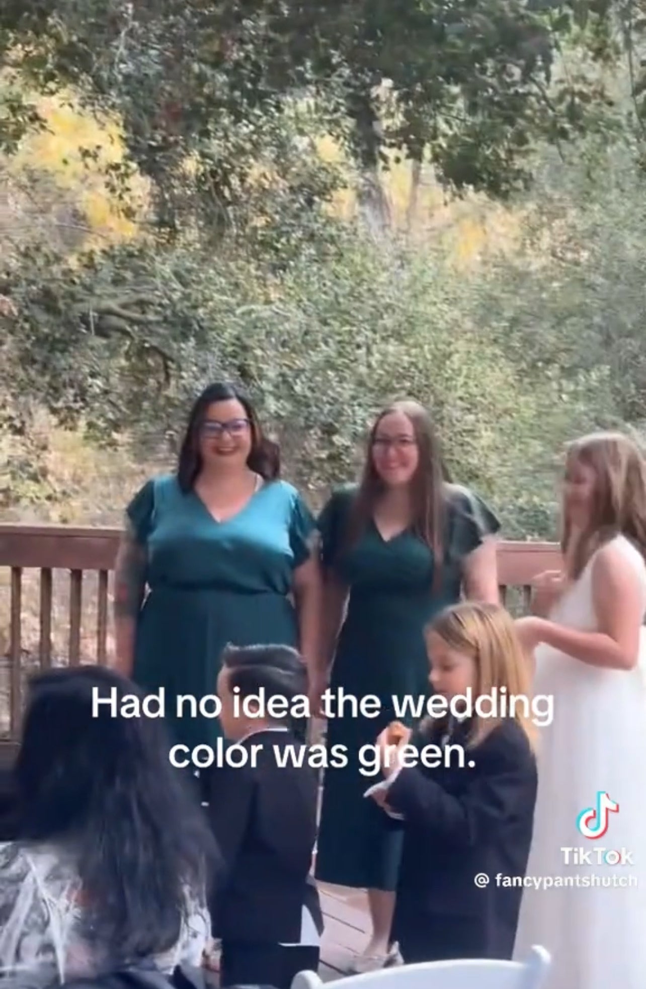 動画冒頭、カメラがクローズアップしたのは、深緑色のドレスで参列した2人の女性。新郎の姉妹、アレックスさんとアビゲイルさんです。