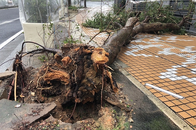 県庁前では、街路樹が根こそぎ倒れるといった被害が出ている。また、記者が滞在中のホテルでは多くの観光客らがチェックアウトを終えても行き場がなく、フロントの前で途方にくれている。