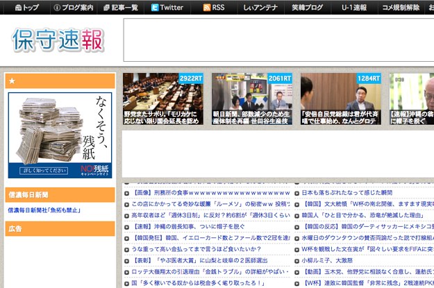 「保守速報」は「政治、東亜ニュースを中心にまとめ」(公式Twitterより)ているサイトで、Twitterフォローが6万人近くにあるなど拡散力が高い。中国や韓国に関する差別的内容や誤った情報などを配信し、たびたび問題視されてきた。