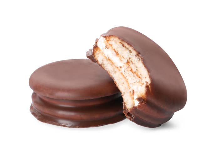 クッキーにマシュマロを挟み、チョコレートでコーティングしたアメリカのお菓子「ムーン・パイ」。