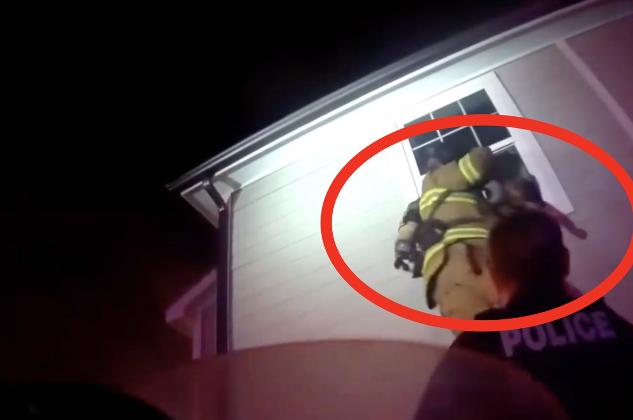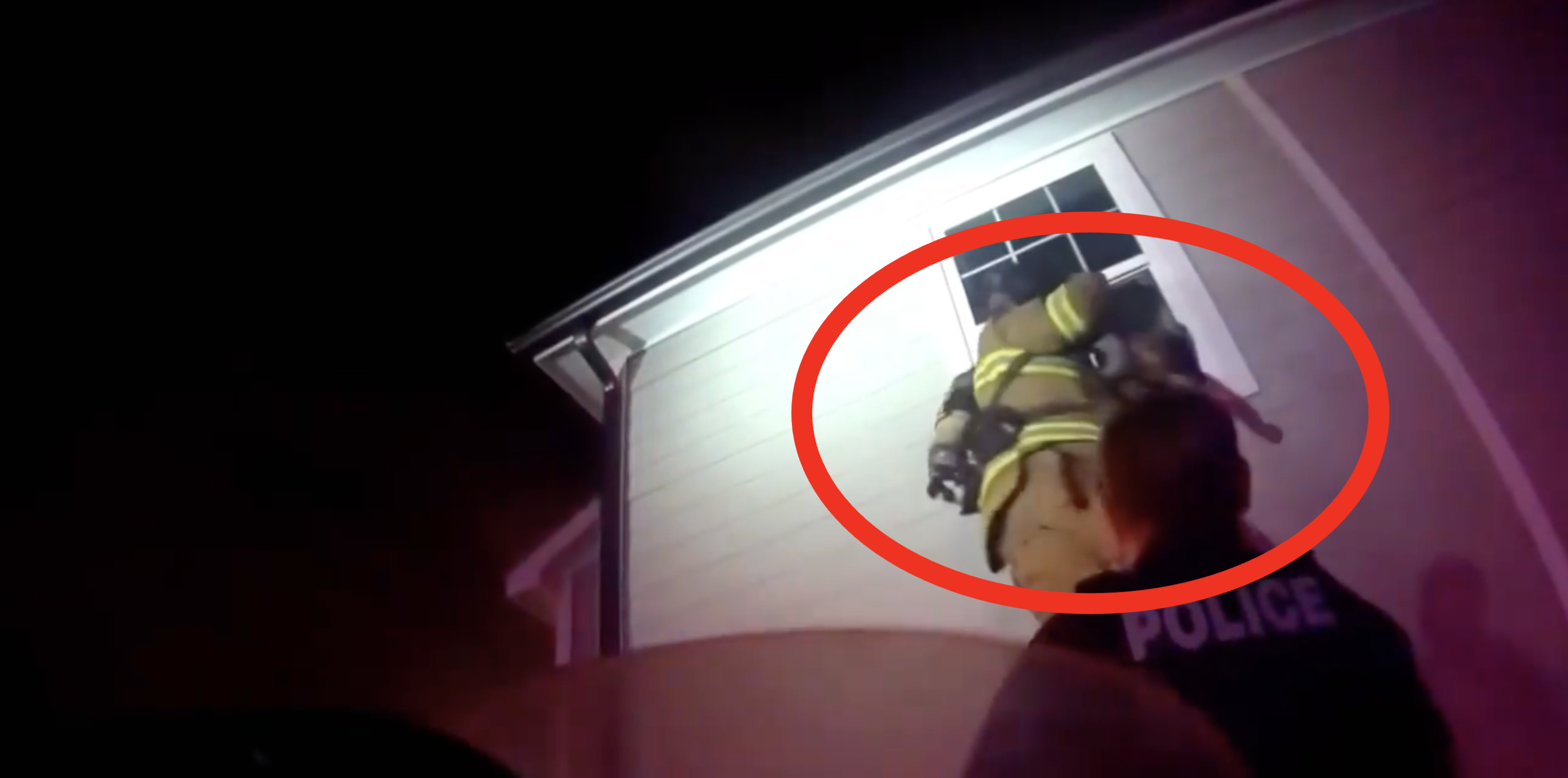 公開された動画は、消防士のボディカメラの映像だ。1人がはしごを支え、もう1人が2階まで登って素早く窓を割った。