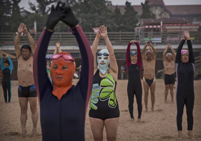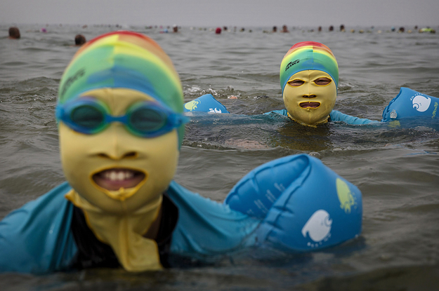 On va leur dire quoi aux touristes chinois qui vont sortir leur cagoule pour ne pas bronzer? #facekini #burkini