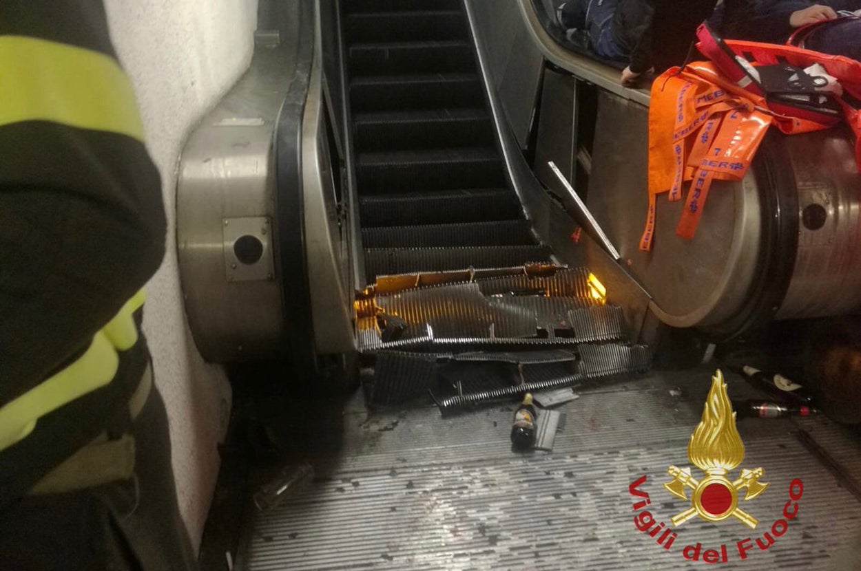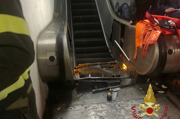 『ラ・レプッブリカ』の報道によると、ファンたちが動いている段の上で集団で飛び跳ねたり歌ったりした後、エスカレーターが故障したという。