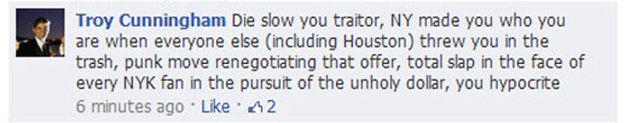 Jeremy Lin made this announcement on his Facebook page after the Knicks failed to match the Rockets offer.