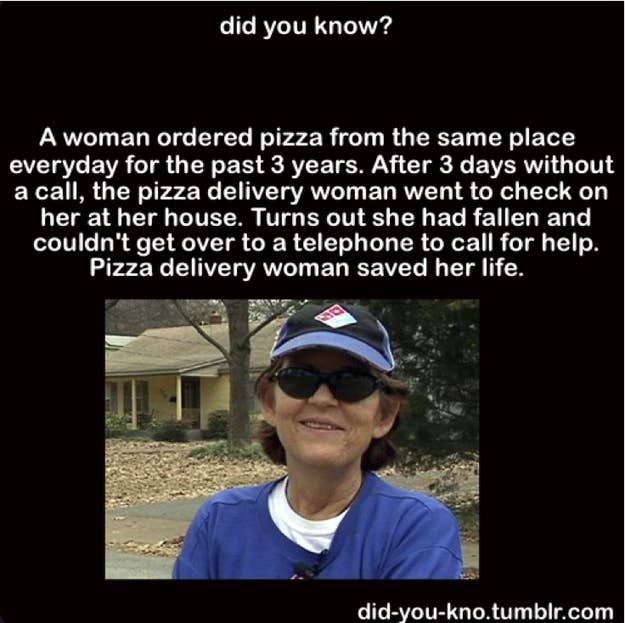 Buzz·Posted on Nov 30, 2011Woman's Life Saved By Her Pizza HabitA tale of terrible life choices saving one woman's life. (Thanks Allie Goertz!)by Jack MooreBuzzFeed StaffFacebookPinterestTwitterMailLink
