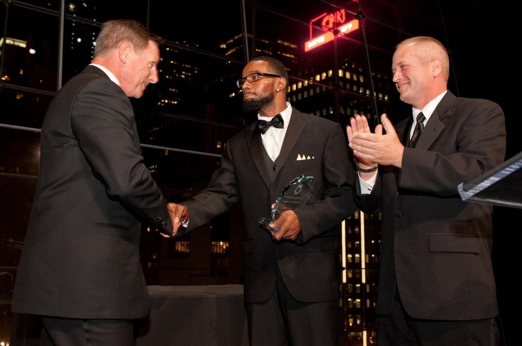 "Kevin found the courage in himself that day to climb back over the rail, this beginning a new stage in his life," Briggs said in his acceptance speech. "Here, standing before us, is the reason we do what we do."