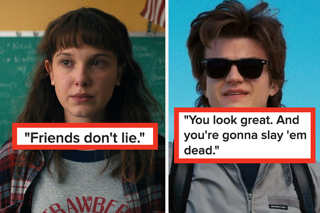 Community·Updated on Jun 9, 2022Which "Stranger Things" Quote Should You Live By?"Friends don't lie."by jueneneneevuafCommunity ContributorApproved and edited by BuzzFeed Community TeamFacebookPinterestTwitterMailLinkBuzzFeed Quiz Party! Take this quiz with friends in real time and compare resultsCheck it out!