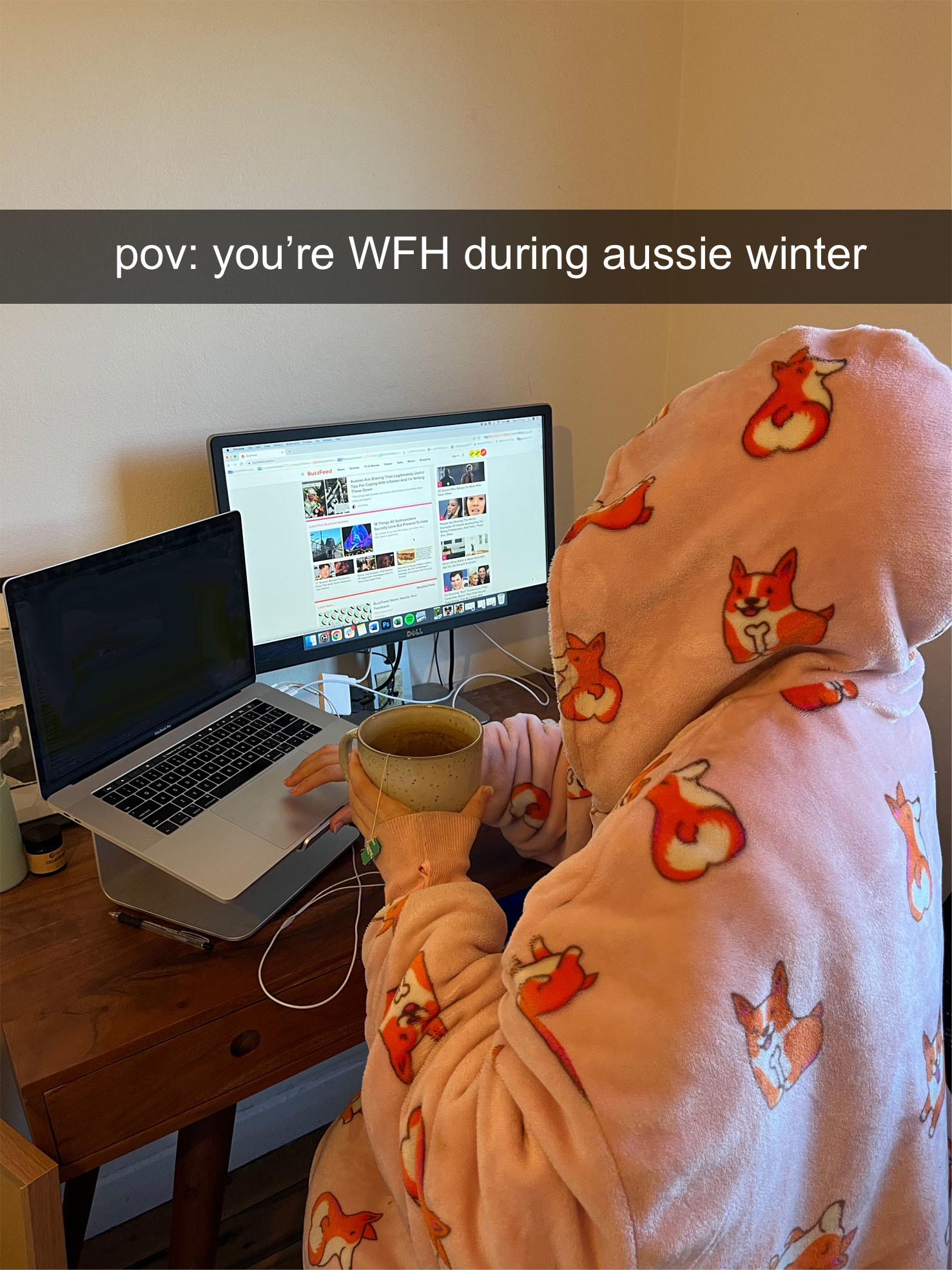 "Canadian living in Melbourne here. People always say to me, 'Oh, you should be used to the cold, you're from Canada!' Uh, yeah, outside with layers on. Not in my own goddam home. I miss central heating!"