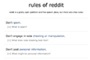 “We don’t get in involved unless it has someting to do with rules,” Martin explained. While individual Reddit communities make their own rules — Martin repeated a quote he had given another reporter earlier today, that a forum moderators could ban all posts that start with “g” if they wanted to — Reddit, the platform, has very few. Reddit.com/rules goes a long way toward explaining why Martin finds himself answering questions about offensive, alarming or morally repugnant subreddits on a fairly regular basis. There are just five commandments, and only two relate to content: