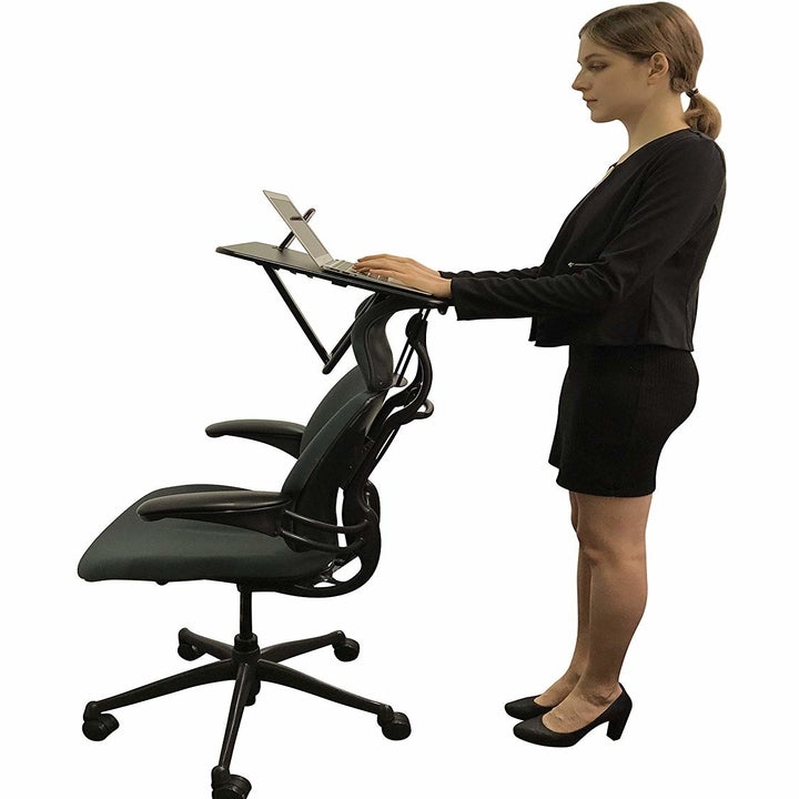 11. This amazing standing desk that you can use to convert your chair (or even the edge of your office cubicle) into a working space to give your legs some room to breathe while working continuously - ₹2,493