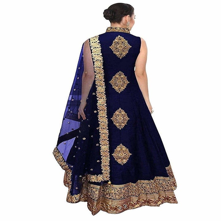7. This Bangalori silk Anarkali gown and dupatta with embroidery and patchwork that is the perfect choice when you're indecisive - ₹1,589