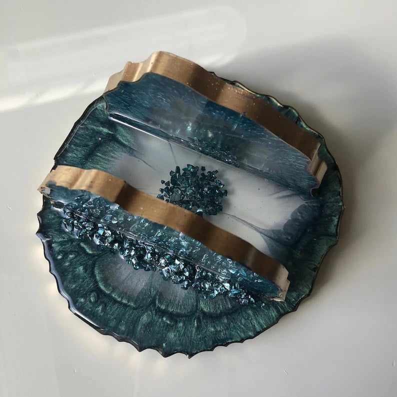 This lovely letter holder is made by a small business in Utah that creates gorgeous resin pieces like coasters, trinket dishes, and wall art.