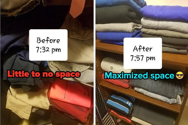 10. A shirt-folding board, because you can't keep stuffing bunched-up clothes in your drawers or on your shelves. If you think you're running out of space to fit your clothes, try folding them with this board. You'll be surprised to see how much space you actually have.