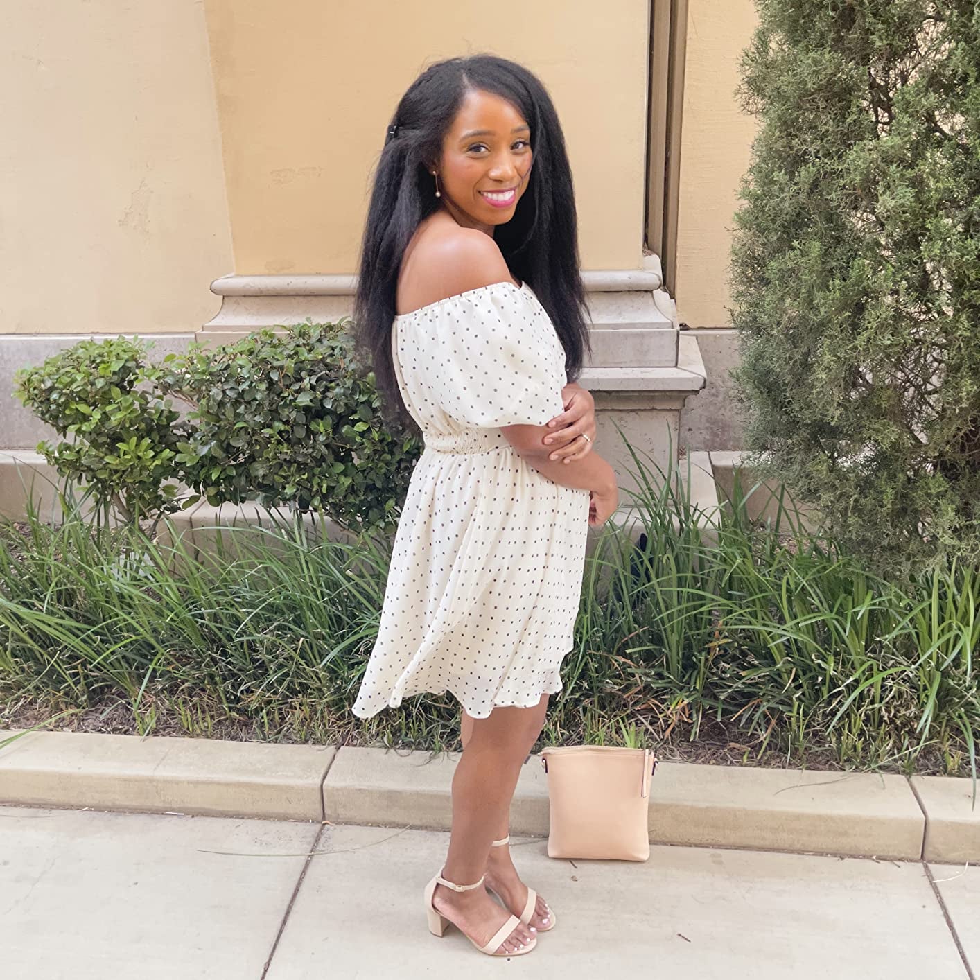 6. An off-shoulder maxi you'll be comfortable in while you sit out in the heat and wait on the bride to start walking down the aisle. It even comes with a slit and in several colors for you to choose from. You're probably going to want to buy more than one because this will easily become your go-to outfit — ranging from attending weddings to going shopping.