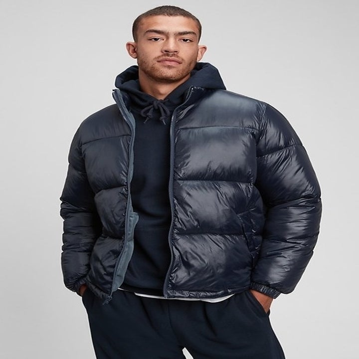 5. Or this faux shearling-lined puffer jacket from Michael Kors that'll keep you warm and stylish in the colder months. It's made of nylon, so it won't overheat you.