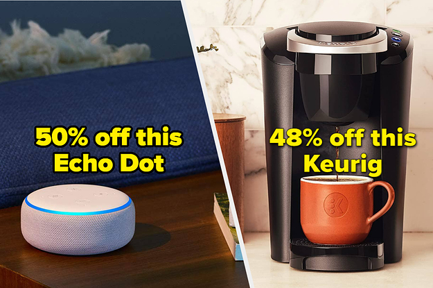 1. 50% off an Echo Dot speaker that'll become your personal assistant. Alexa can set alarms, answer questions, play music, and check the weather. All you have to do is say her name!