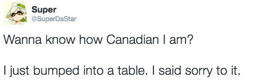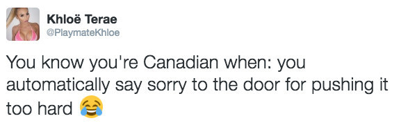 Pointed out when a celebrity is Canadian for no reason at all.