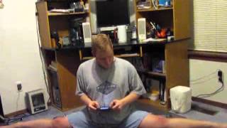 Note the video game controllers on his legs: