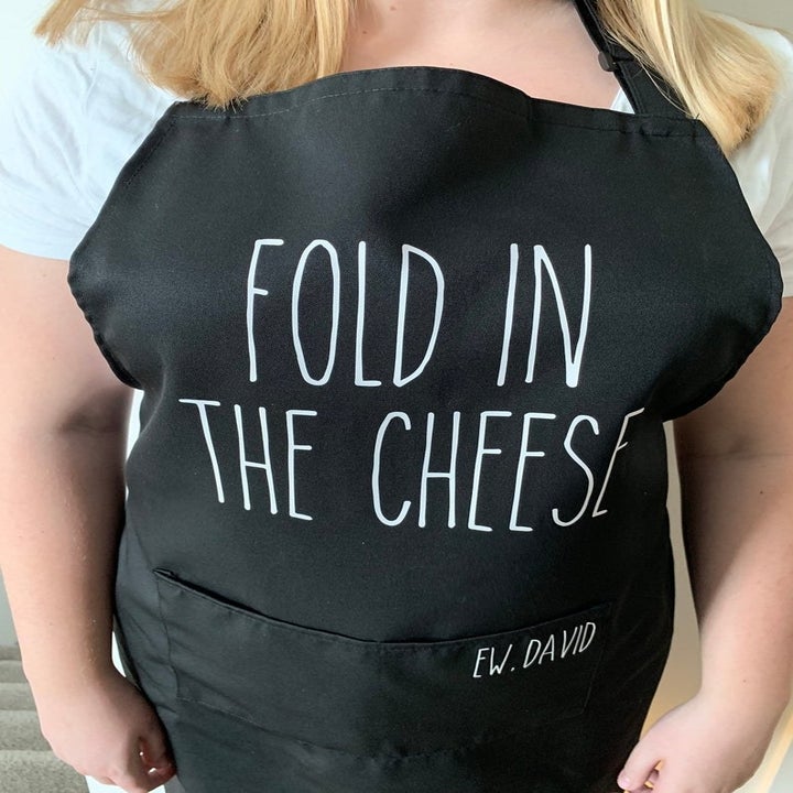 19. A truly amazing Schitt's Creek-inspired apron to remind you the most important thing to remember when making your family's famous enchilada recipe.