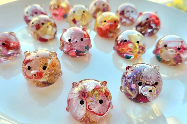 4. A tiny and sweet resin animal with real dried flowers embedded inside. You can choose from a bear, pig, cat, or penguin (or just go ahead and order all four). Say hello to your new desk buddy!