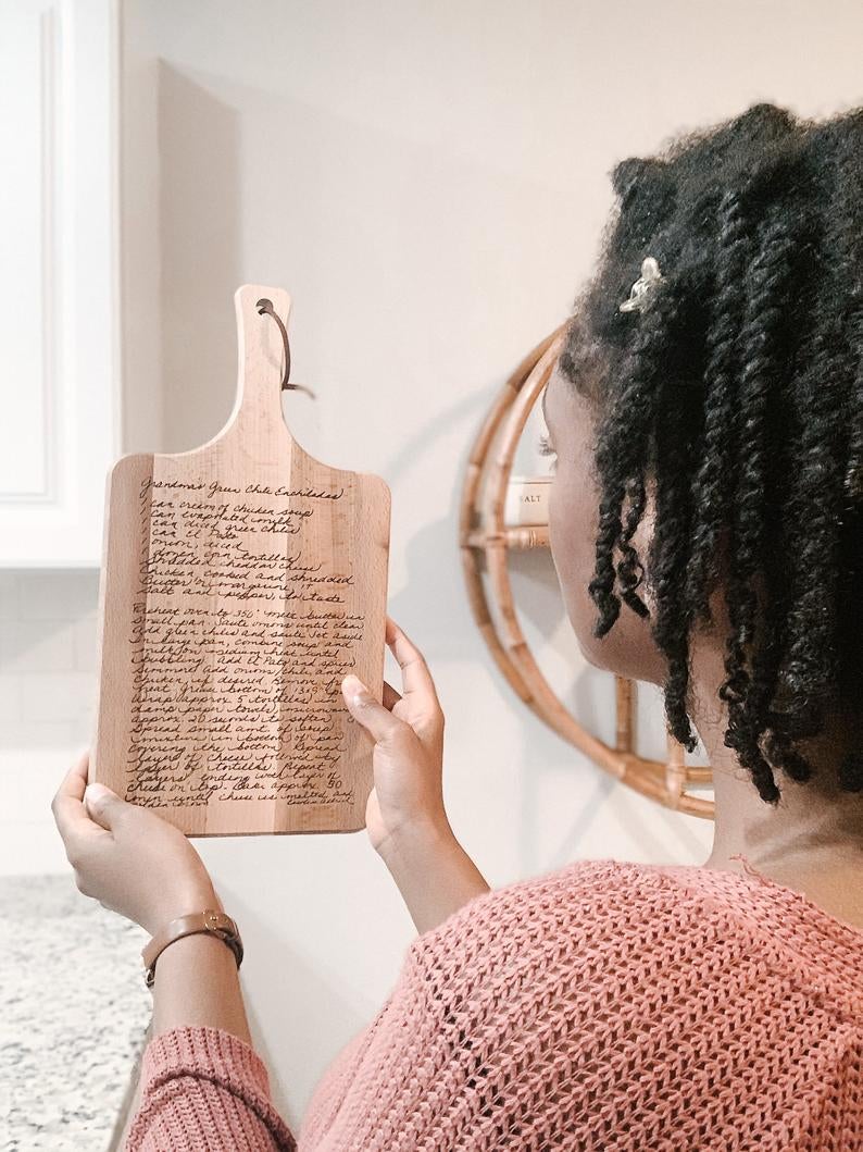 28. An heirloomworthy cutting board custom engraved with a favorite family recipe, so you'll never forget the secret ingredient to your great-grandma's Bolognese again. It also makes for great kitchen decor or even a housewarming gift!