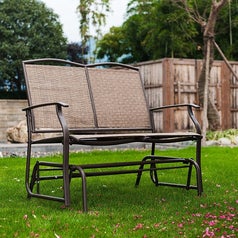 Get the sofa for $229.99 (available in two colors), the table and chair set for $136.01, and the patio bench for $69.59.