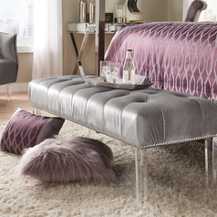 Get the headboard for $59, the ottoman for $106.99, and the vanity for $169.99.