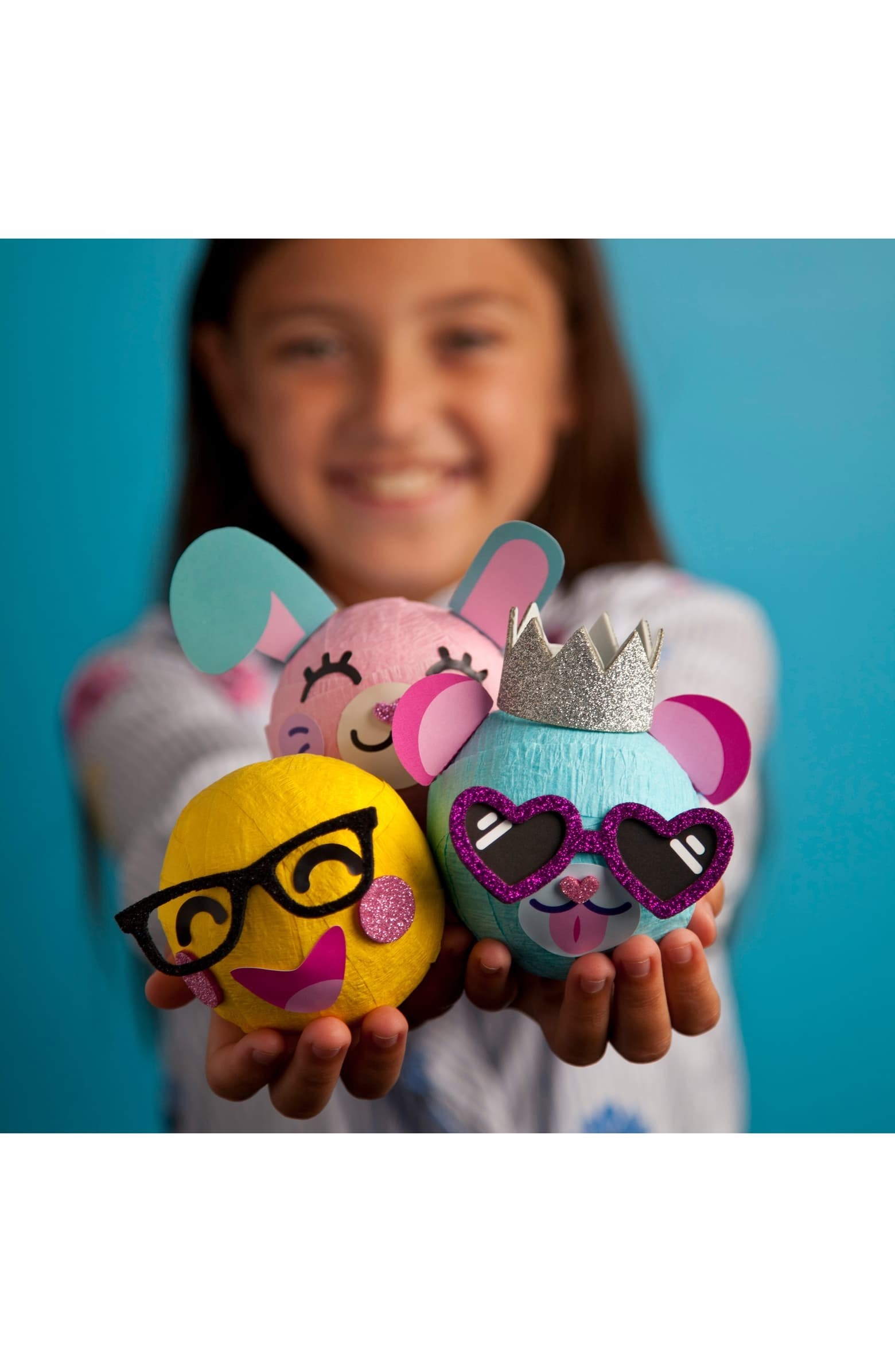 Kit includes: plastic capsules, crepe paper, stickers, cardstock, glitter foam, glitter foam stickers, jump rings, elastic cord, puffy stickers, adhesive tape, and detailed instructions.