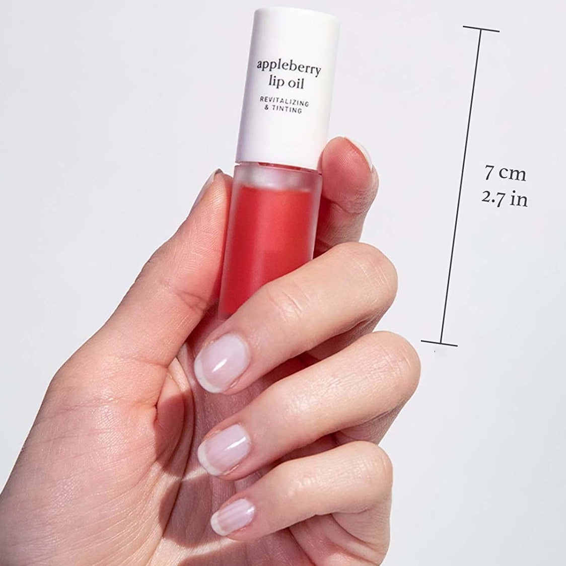 5. Nooni Appleberry Lip Oil — it's the perfect thing to throw on when you don't have the energy to do a full face of makeup, but you still want to feel put-together. This pinkish-red tinted, non-sticky oil will moisturize and soften your lips, thanks to the formula's combination of vitamins A, C, and E, apple water, and raspberry extract.