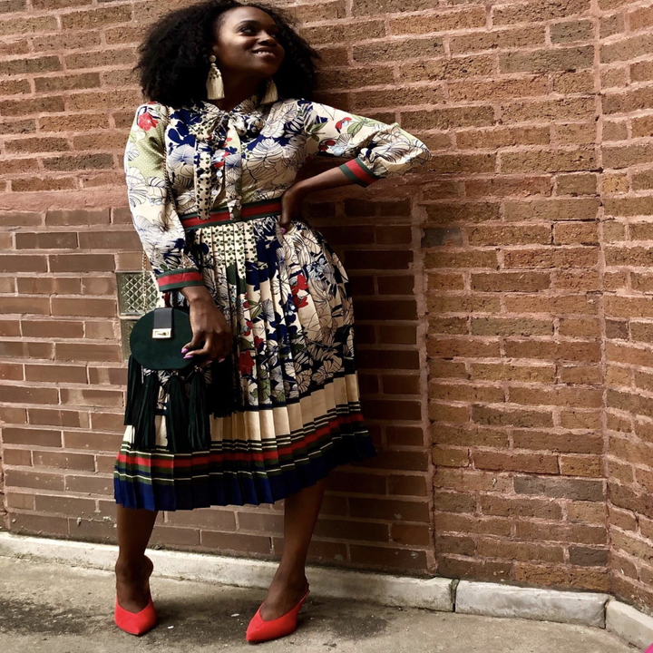4. A high-neck, fit-and-flare option that is dying to meet your cutest belt. Look at this combo! Ugh, it cannot be topped.