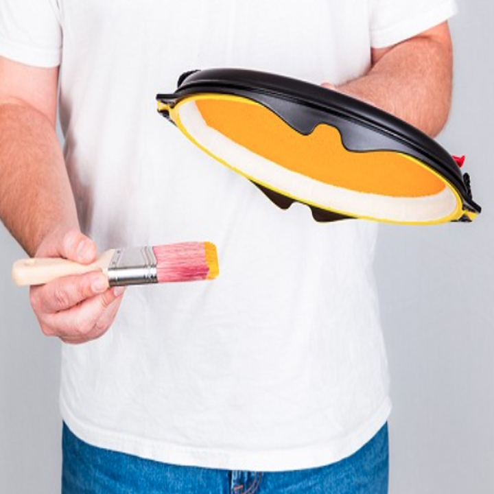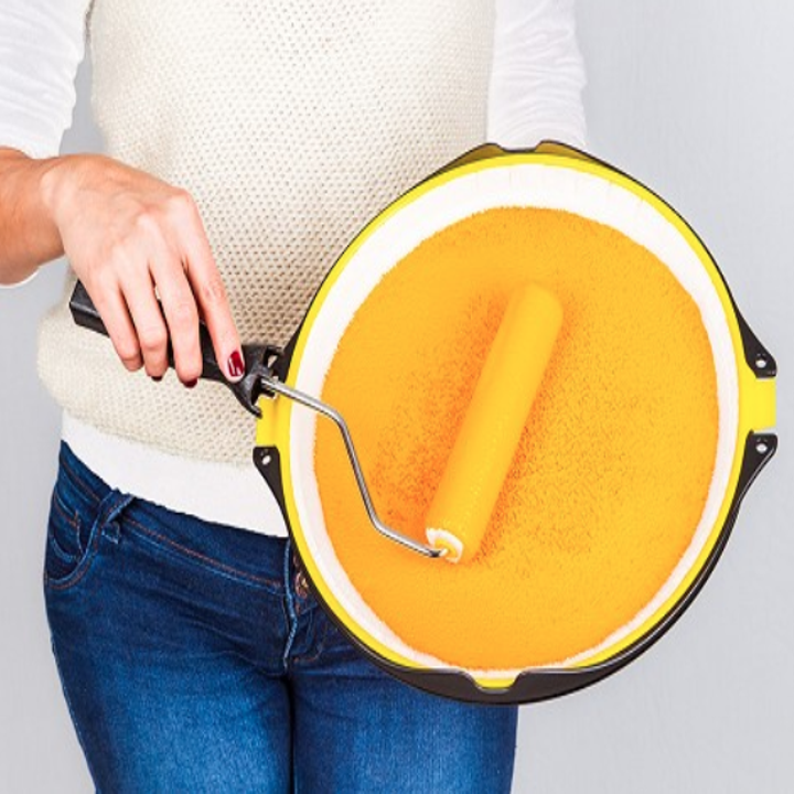 8. A no-spill paint tray with a handle for convenient holding, and a fabric liner that ensures the only place your paint ends up is on the wall.