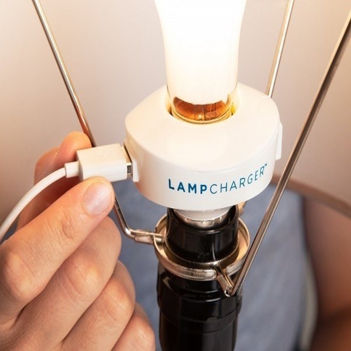 14. A USB lightbulb adapter because we will no longer accept hunching over the side of the bed just to reach our phone while it's charging. Now, you can utilize all your chargers (short and long). <3