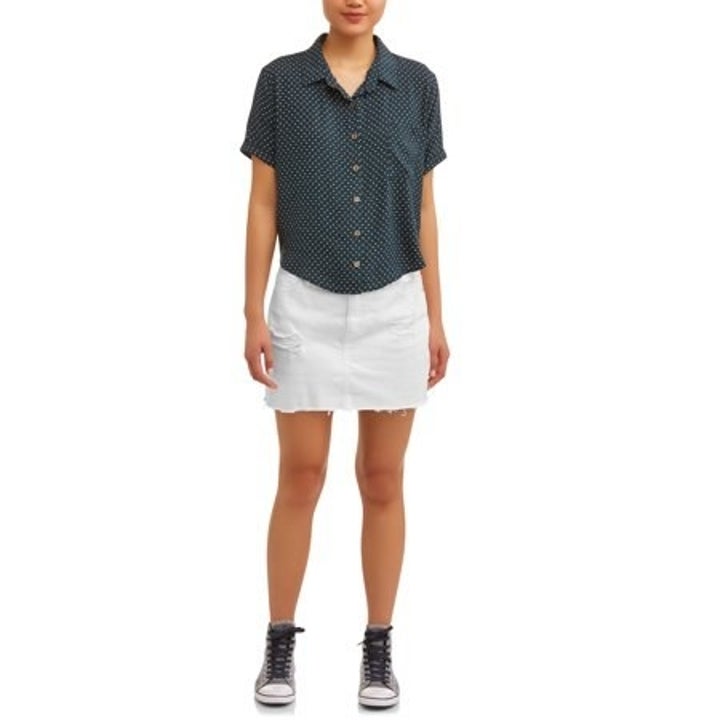 14. A button-up tie shirt that'll give your white tee a break and easily chic up any casual outfit. Plus, it comes with a tiny price tag and in tons of colors and prints so you could theoretically have one for each day of the week. ¯\_(ツ)_/¯