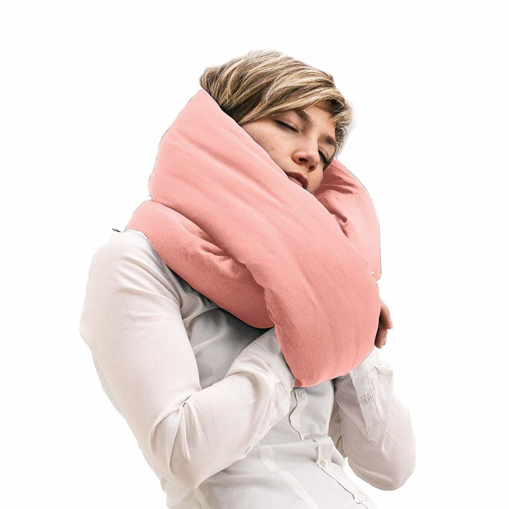 16. A travel-friendly infinity pillow that wraps around your neck like a scarf while you sleep. The innovative designs supports your chin, so you don't wake up with a sore neck.
