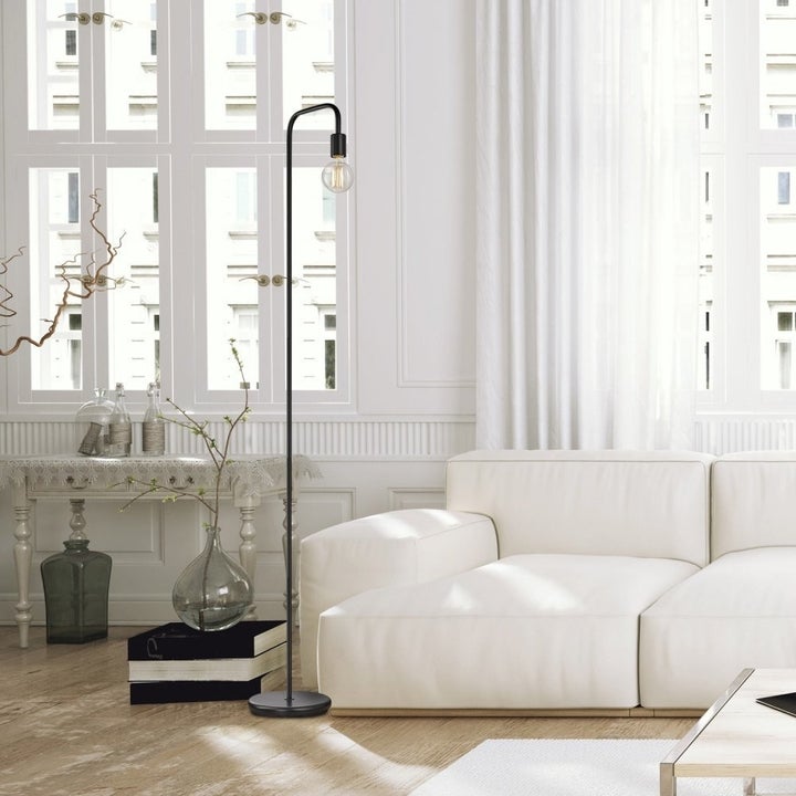 8. Curl up with a book next to this minimalist floor lamp. It has a five-foot cord, so you can place it anywhere in the house. All you need a vintage Edison bulb to complete the look!
