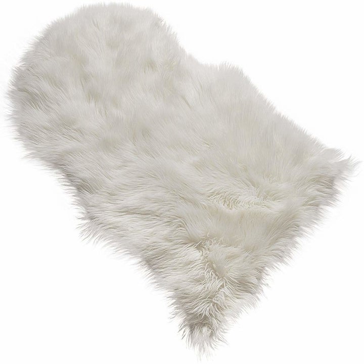 12. A multifunctional faux fur rug that is soft, fluffy, and too cute for words. You can use as an area rug to keep your feet warm or as an accent piece for a chair or bench.