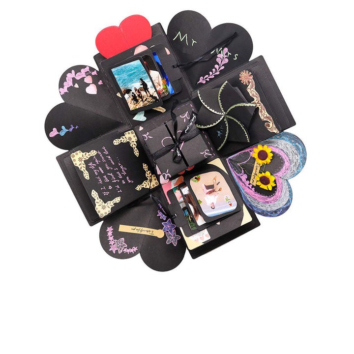 1. Surprise your best friend with this three-dimensional DIY scrapbook box. You can glue pictures on to it and write messages on the card stock. Tuck a few small items into the smaller box at the center! It's a great gift for special occasions, or just because.