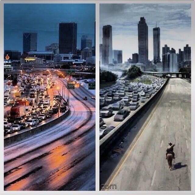 Atlanta closely resembled the opening shot of "The Walking Dead," as evidenced by this side-by-side image tweeted by @BeMeyer.