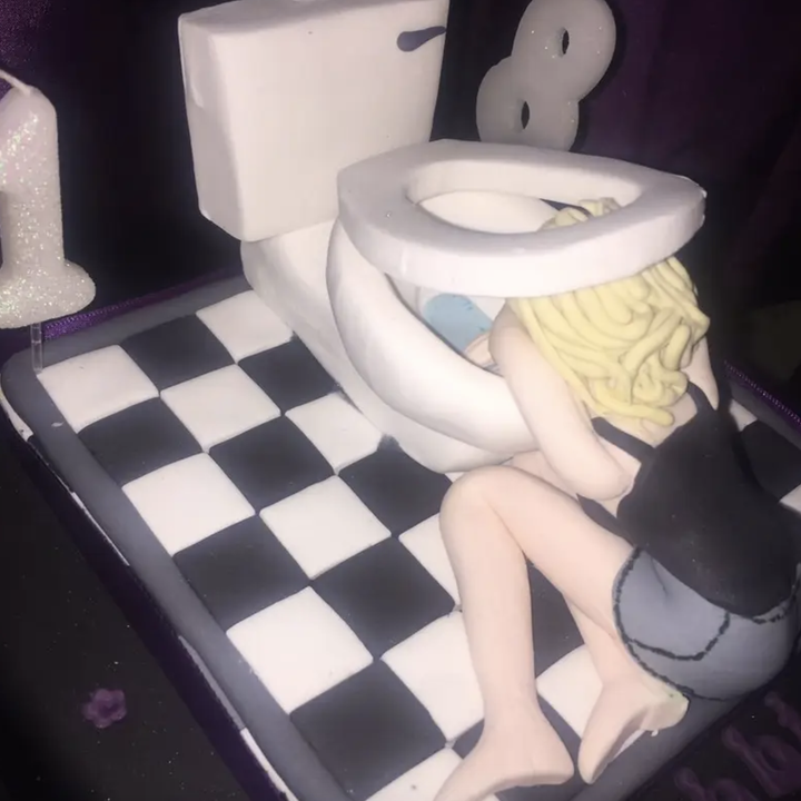 In 2016, Abbi Price told BuzzFeed News that the toilet cake was based on the photo (pictured above) of her after "a small gathering with family and friends."