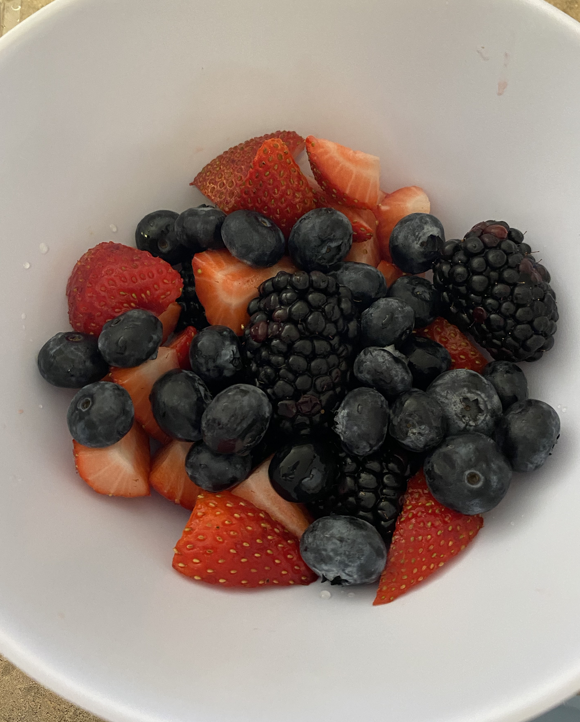 After seeing it all over my FYP, I was super excited to try it! I used strawberries, blueberries, and blackberries. Unfortunately, since I'm in Kansas, pomegranates are out of season and aren't being sold here right now. 😢