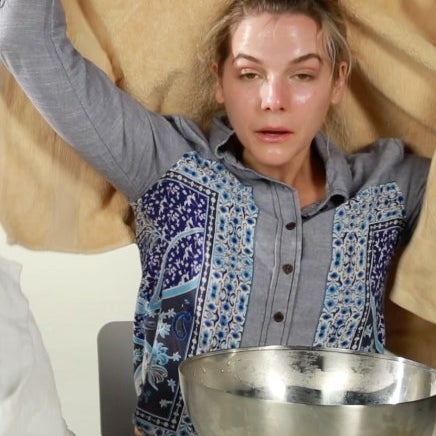 Next, we tried steaming our faces over a basin of hot water (to open our pores), a technique supposedly used by Audrey Hepburn.